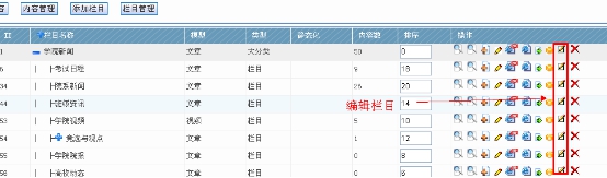 3) 查看欄目鏈接地址、展開、修改、刪除欄目,了解欄目ID。