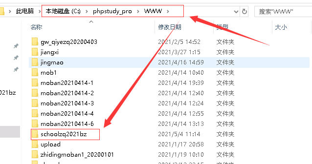B:點擊進入www目錄,這個目錄存放了所有安裝程序的目錄,現在選定我們需要的那個網站,假設是 schoolzq2021bz這個網站,里面存放的是程序