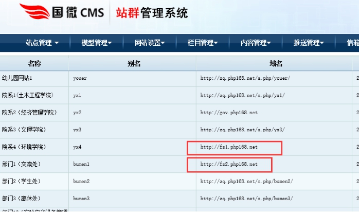 1、進(jìn)入站群后臺;選定你需要設(shè)置二級域名的分站點(diǎn)