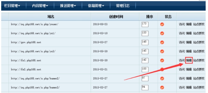 2、點(diǎn)擊”編輯”,進(jìn)行分站方面的設(shè)置