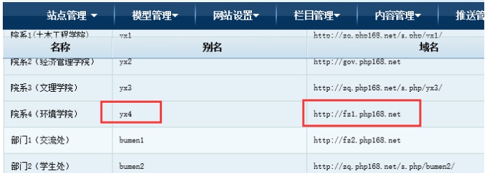 下面是兩個(gè)分站的域名設(shè)置參考: