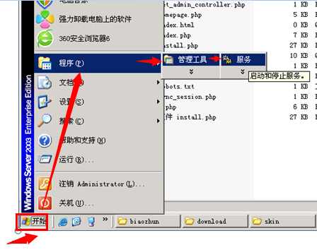 A、點擊:開始---程序---管理工具---服務