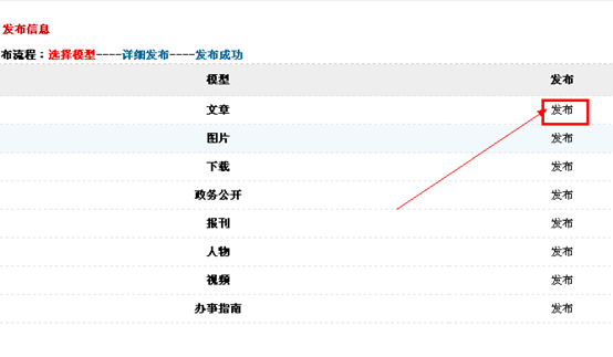 C ) 、在下面的模型中,點(diǎn)擊發(fā)布按鈕即可;一般是選擇 文章、圖片、下載、視頻這幾個模型。