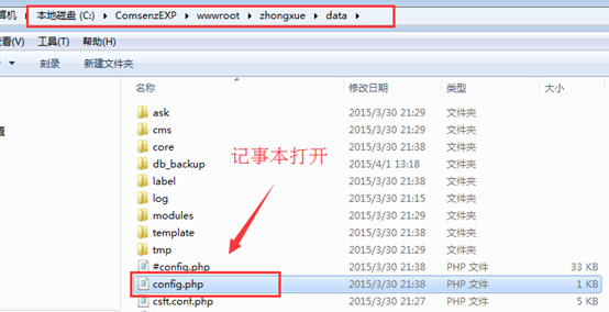 進入:網站根目錄---data---config.php,用記事本打開
