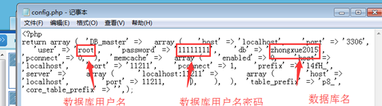 要確保網站config.php里面數據庫的信息是正確的;主要是涉及到數據庫用戶名賬號、密碼、該網站數據庫名