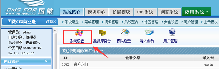 網址:127.0.0.1/zhongxue/admin.php 默認賬號密碼是: admin admin8888