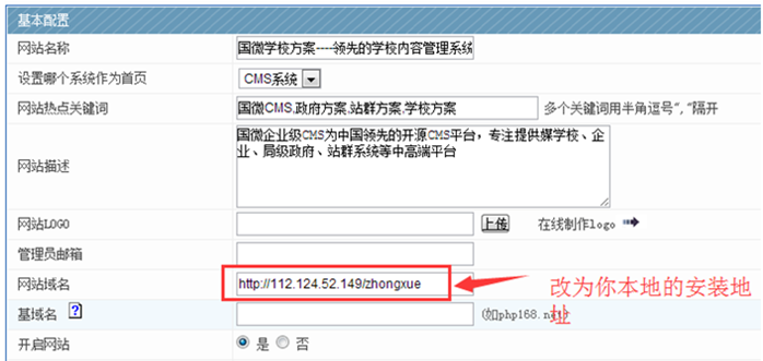 2、 修改網站后臺的域名