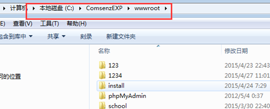 進入服務器;路徑:某某盤(默認C盤)----ComsenzEXP---wwwroot下