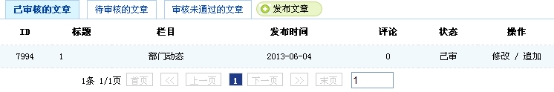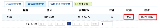 新發(fā)布的文章在——待審核的文章欄目下 狀態(tài)顯示為未審核 等待管理員的審核