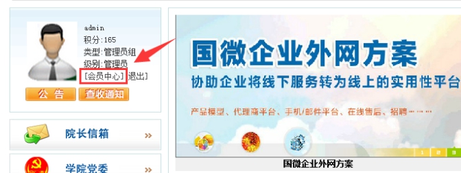 A:管理員登陸后,點(diǎn)擊”會(huì)員中心”,進(jìn)入會(huì)員中心