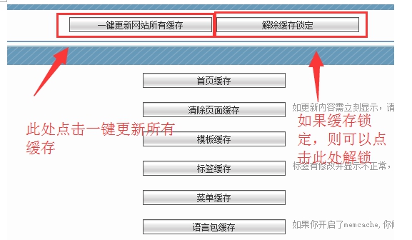 一鍵更新所有緩存:如果碰到無(wú)法解決的現(xiàn)象,第一個(gè)想到的就是要更新全站緩存。