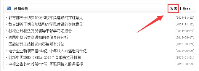系統(tǒng)可快速找到發(fā)布入口,只要擁有該欄目的發(fā)布權(quán)限,就可以看到”發(fā)表”二字,反之,沒有權(quán)限則看不到這兩個(gè)字。