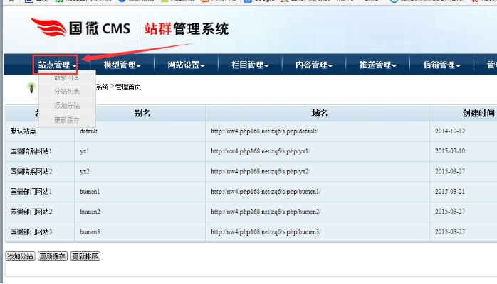 進入網站后臺--- 點擊”分站系統“即可進入管理界面
