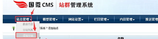 方式二:在菜單處,點擊站點管理---添加分站;進入相關設置界面即可