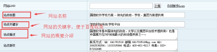 站點(diǎn)關(guān)鍵字:如果多個(gè)關(guān)鍵字用英文半角狀態(tài)間隔,便于百度搜索,類似 國(guó)微CMS系統(tǒng),國(guó)微站群系統(tǒng)