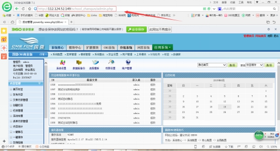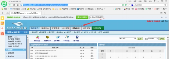 注意:只要把你服務器的地址輸進去就行了,例如我們想把內容發布到如下站群的某一個分站(http://112.124.52.149/school_zhanqun/admin.php),我們只要把http://112.124.52.149輸入到如下所示位置就行了