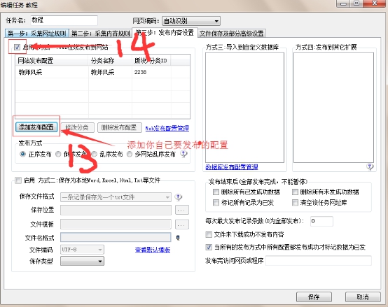 假設前面網址和內容規則寫好后,第三步:發布內容的設置