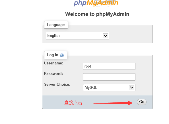 數(shù)據(jù)庫(kù)管理入口,賬號(hào)輸入root,然后直接點(diǎn)擊登錄(因?yàn)槟J(rèn)密碼為空)