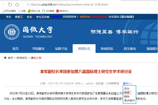 五丶用下面這一段,替換上面圖七那一段,然后保存、提交在到后臺更新模板緩存,緩存嚴重的需要清理下瀏覽器緩存,在到內容頁點擊操作按鈕,編輯內容。