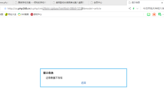 一丶在內容頁點擊操作按鈕編輯內容時,出現這條數據不存在(如圖二)。