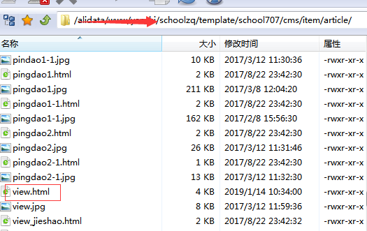 三丶我們通過ftp鏈接服務器(以下為linux為實例)進行修改,windows服務器通過遠程桌面鏈接,修改的路徑就是程序名稱/template/school707(模板名稱)/cms/item/article/view,html(如圖五和圖六)。