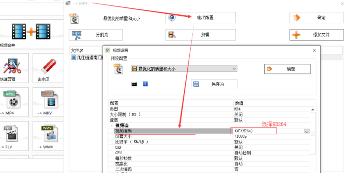 然后點擊輸出配置----視頻編碼選擇“HD264”