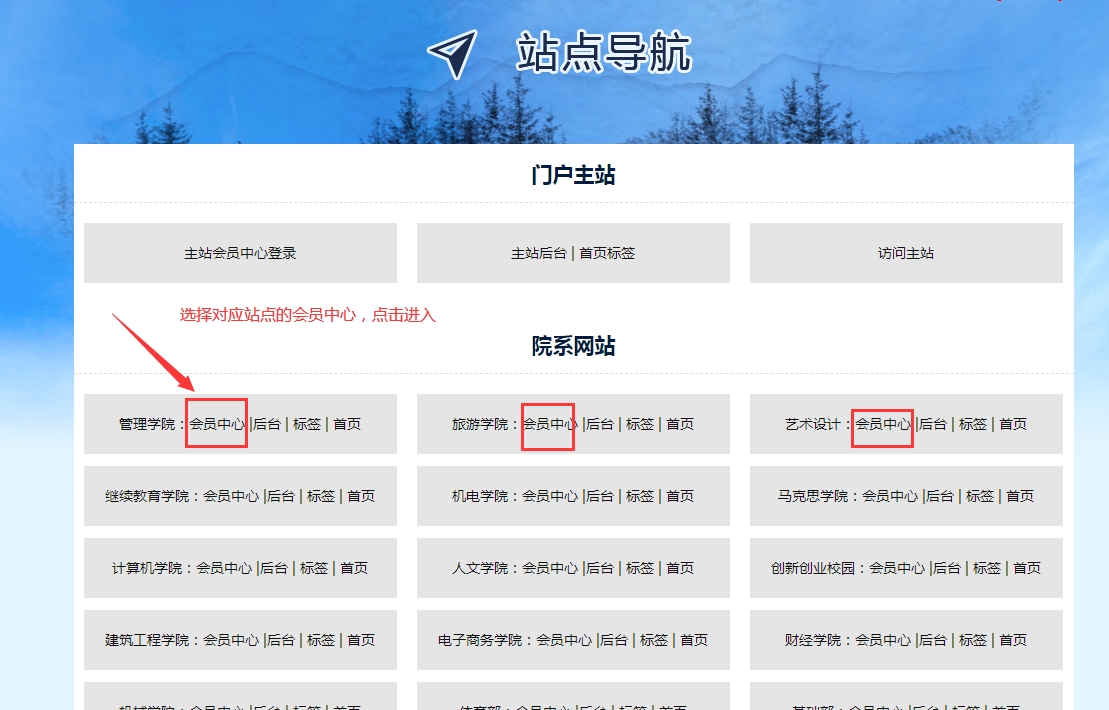 會員中心入口:找到自己的站點,點擊進入“會員中心”;點到其他站點的會員中心會提示沒權(quán)限。