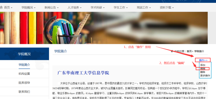 點擊頁面上的【操作】按鈕----點擊【編輯】按鈕
