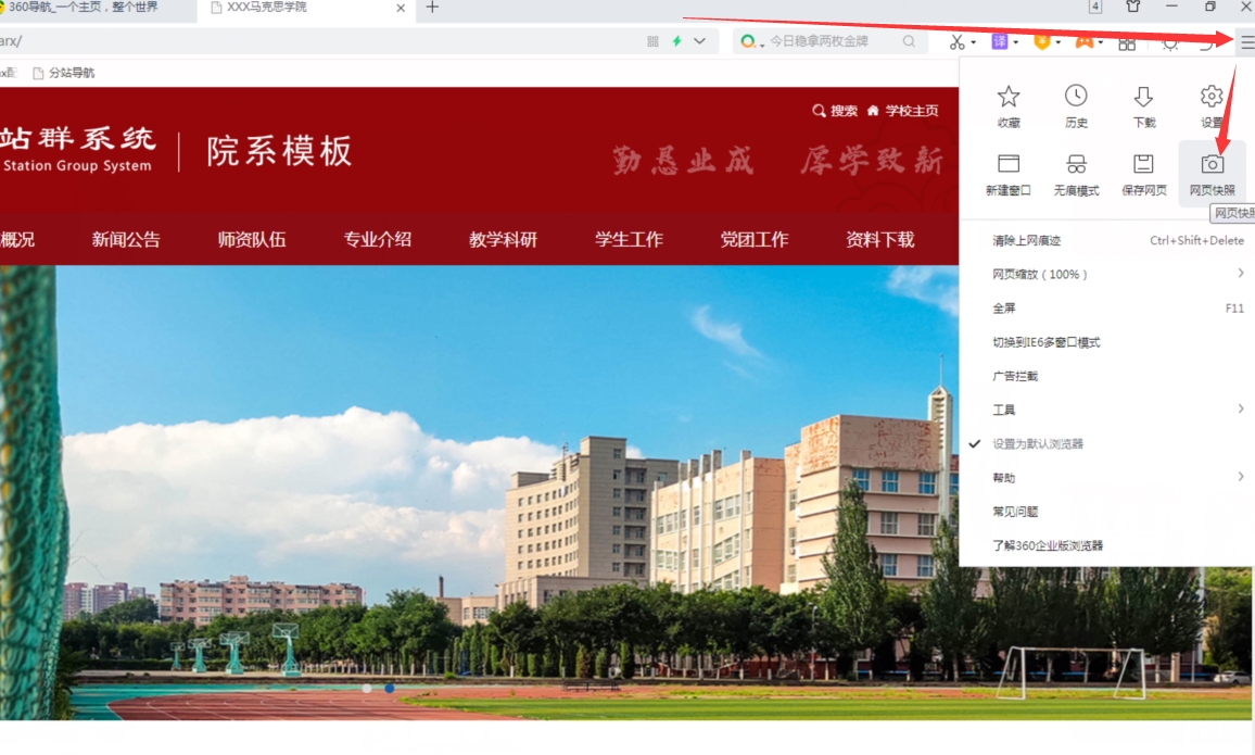 B:打開后,點擊360瀏覽器右邊的操作按鈕,然后點擊【網頁快照】