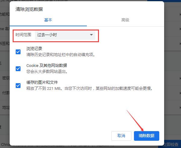 步驟3:點擊清除數(shù)據(jù);然后最后打開網(wǎng)站快速刷新兩次即可。