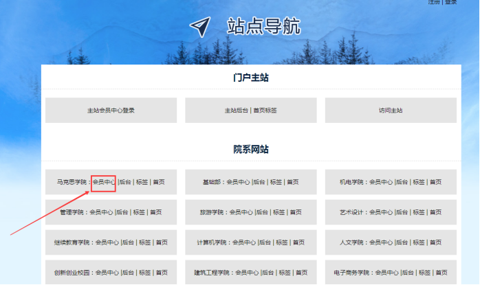 1、從“統一登錄”入口進入---------點擊對應該“子站會員中心”(其他方式進入該子站會員中心也可以)