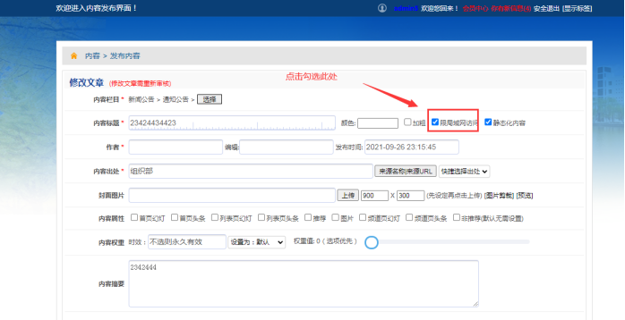2-1、情況一:如果是新發布的內容,直接在發布內容的時候,勾選【限局域網訪問】---然后點擊【提交】
