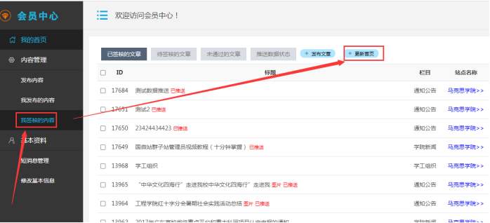 3、上述兩種情況都操作后,需要再做如下后面操作,點擊【我簽核的內容】---點擊【更新首頁】