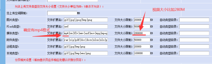 場景:如果不通過eweb編輯器。想系統(tǒng)默認自帶的視頻模型或編輯器上傳視頻。就需要進入網(wǎng)站后臺----系統(tǒng)設(shè)置----附件上傳里面。將總開關(guān)里面的附件格式和大小設(shè)置,比如視頻的mp4格式;然后對應(yīng)各個角色設(shè)置所需上傳的視頻和大小。
