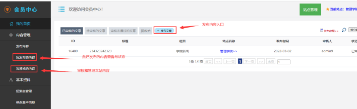 對本站點的欄目、菜單、內容、設置、橫幅替換、網站名字等所有進行管理。僅限站點管理員才有權限進去。