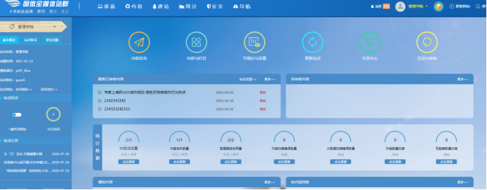 子站后臺也可以進行完整的內容發布、內容管理、欄目管理、菜單管理、標簽可視化管理、logo和橫幅管理等所有操作。