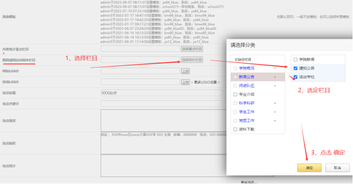 設置下本站點哪些欄目不受時間限制,全部放開公網查看內容。