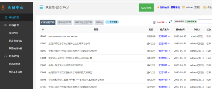 點(diǎn)擊進(jìn)入后,內(nèi)容管理的會(huì)員中心界面: