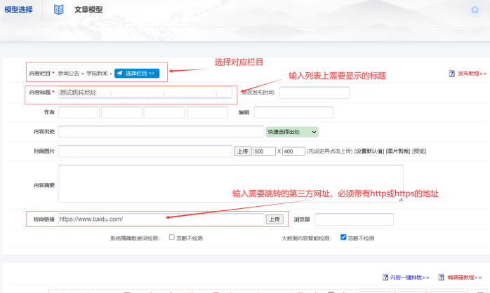 然后和發(fā)布文章一樣,需要【選擇內(nèi)容欄目】、填寫【內(nèi)容標(biāo)題】;