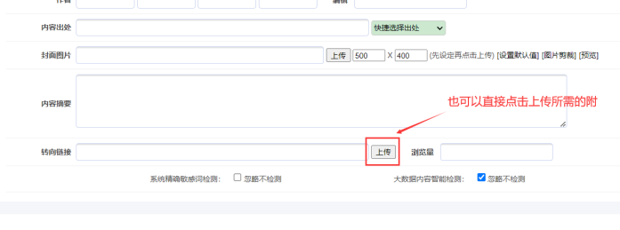 備注:如果不是第三方網(wǎng)址,是自身的附件,比如希望打開標(biāo)題是PDF或者圖片、或者下載,此處則直接點(diǎn)擊【上傳】按鈕即可: