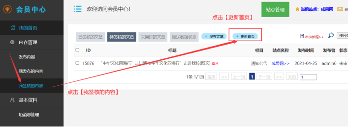 在會員中心-------點擊【更新首頁】---然后再打開對應頁面,快速刷新兩次即可