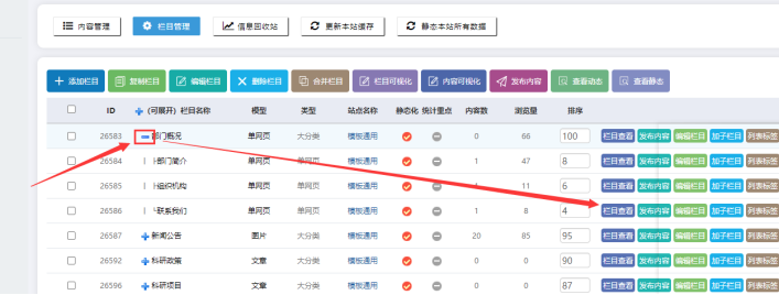單網網頁效果如下:點擊【欄目管理】-------點擊【展開欄目】-------【欄目查看-----靜態預覽】: