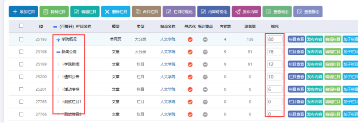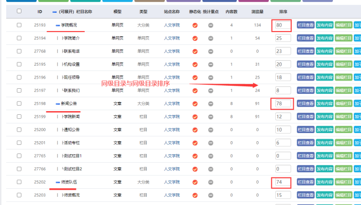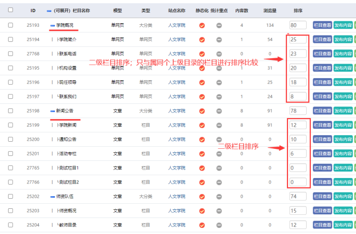 子站如何欄目進(jìn)行排序