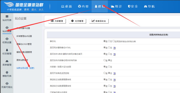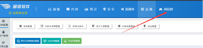 進入主站后臺后----點擊【網站群】按鈕 :