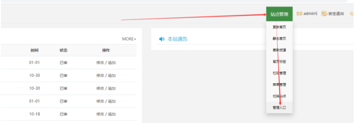 打開統一登陸入口------點擊各子站的【會員中心】入口------鼠標放在【站點管理】按鈕上-----點擊【管理入口】:
