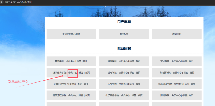 打開統一登錄入口------點擊各對應子站的【會員中心】
