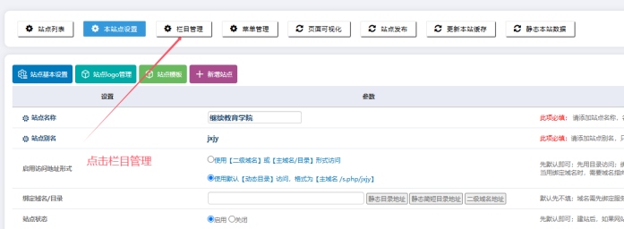 五、點擊【欄目管理】: