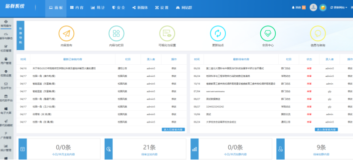 主站后臺效果: