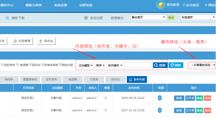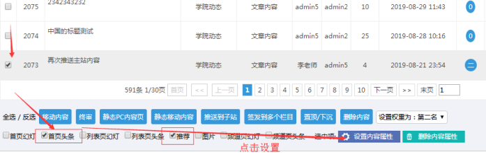 I:屬性的設置與刪除(對內容屬性的處理,比如頭條、推薦)
