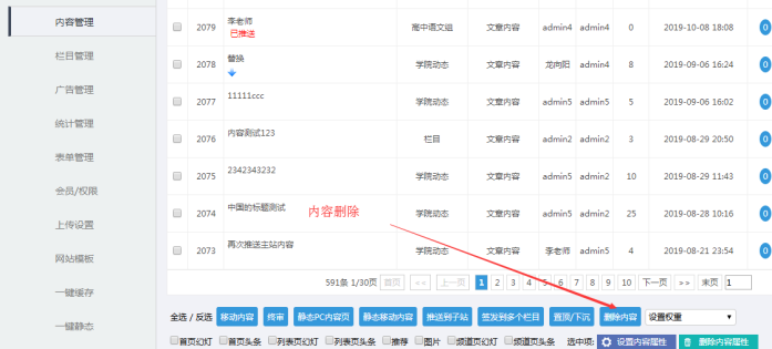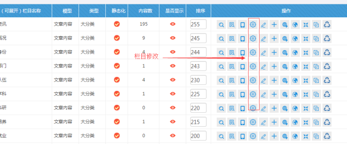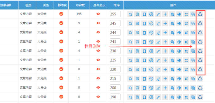 H:欄目刪除(如果需要刪除欄目,點擊此處,實際上進去了回收站,可以一鍵恢復)